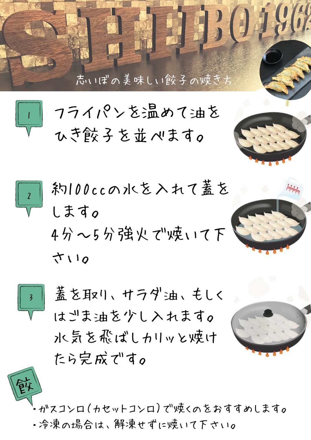 【餃子の焼き方】 こちらをご参考にお作り下さい。
